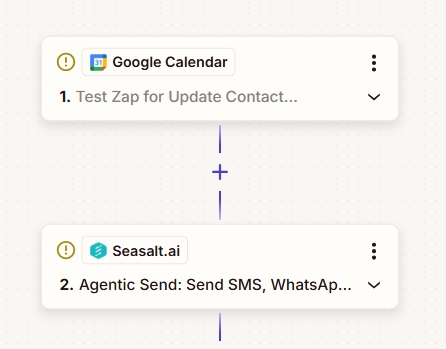 Seasalt.ai Agentic Send 是一個強大的功能,專為徹底簡化複雜、多步驟的 Zapier 自動化流程而設計。它能將原本脆弱的多步驟設定(可能需要五、十,甚至十七個步驟)壓縮成 單一步驟動作——讓流程僅需 一個觸發 + 一個動作。