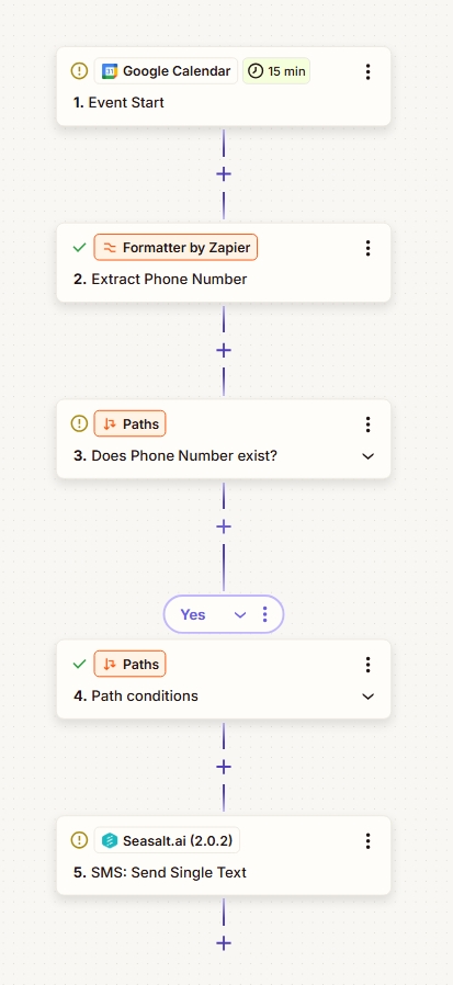 一般來說,從行事曆事件自動發送簡訊/WhatsApp 提醒需要一個脆弱的五步驟流程: